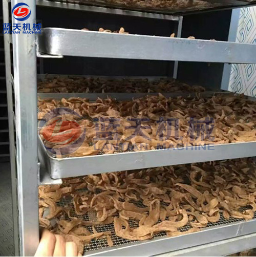 天麻蒸制后,先在烘干機或烘房內(nèi)烘至半干。烘干初期,溫度保持在50~60℃,并保持適當通風。以后每小時提高0.5℃,逐步提高至65℃。烘干初期若溫度過高,天麻容易出現(xiàn)糠心;溫度過低,通風不好時天麻容易變質(zhì)。若天氣晴好,也可日曬夜烘,降低烘干成本。