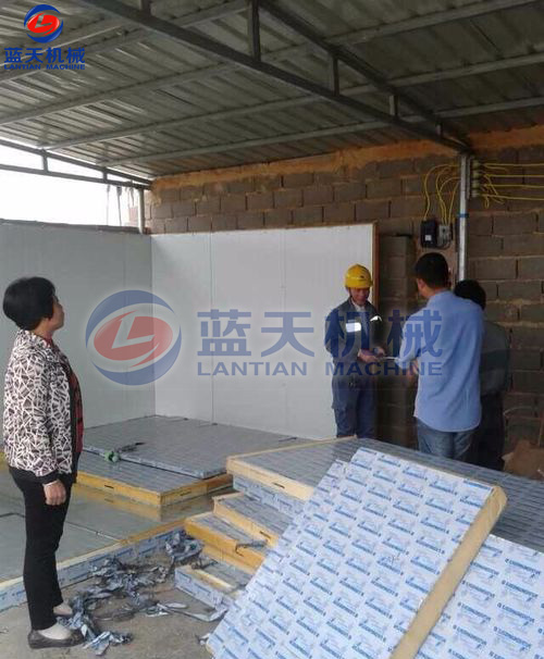 烘房板材包括底板和門板的厚度根據(jù)實際情況,可采用5-10公分左右的厚聚氨酯發(fā)泡板保溫,底板內(nèi)外鍍鋅板。一方面這種材料具有良好保溫效果的恒溫室,輕便安裝的同時,具有一定的耐磨和耐壓性能、在一般良好和惡劣的環(huán)境中都能夠適應(yīng)。使用年限十年以上;另一方面能確保烘干房循環(huán)均勻風(fēng),保證物料在一個緩慢均勻的環(huán)境中實現(xiàn)水分的蒸發(fā),保證在整個烘干房內(nèi)物料的烘干均勻度。