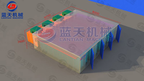 紅糖烘干工藝:將紅糖磚切成方塊狀,置入托盤中,在物料架中分層放好,注意層與層之間的距離,將物料車推入烘干房,開始啟動溫濕控制系統,在紅糖烘干機的使用過程中,第一個小時可以只升溫不排濕,因為在工作的第一階段,烘干房里面的濕度很低。第二階段設定為烘干加排濕的工作程序模式。紅糖烘干機帶有余熱回收功能。在排濕過程中的熱量會重新參與到烘干房的熱循環。排濕過程當中不會造成熱量浪費,從而降低了運行成本。