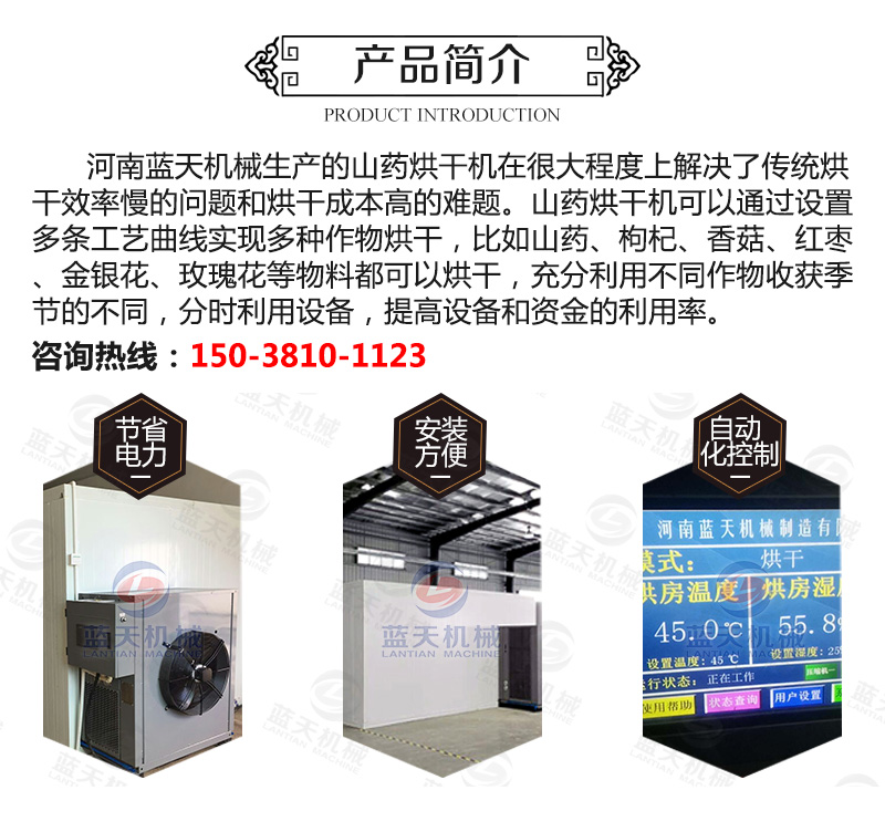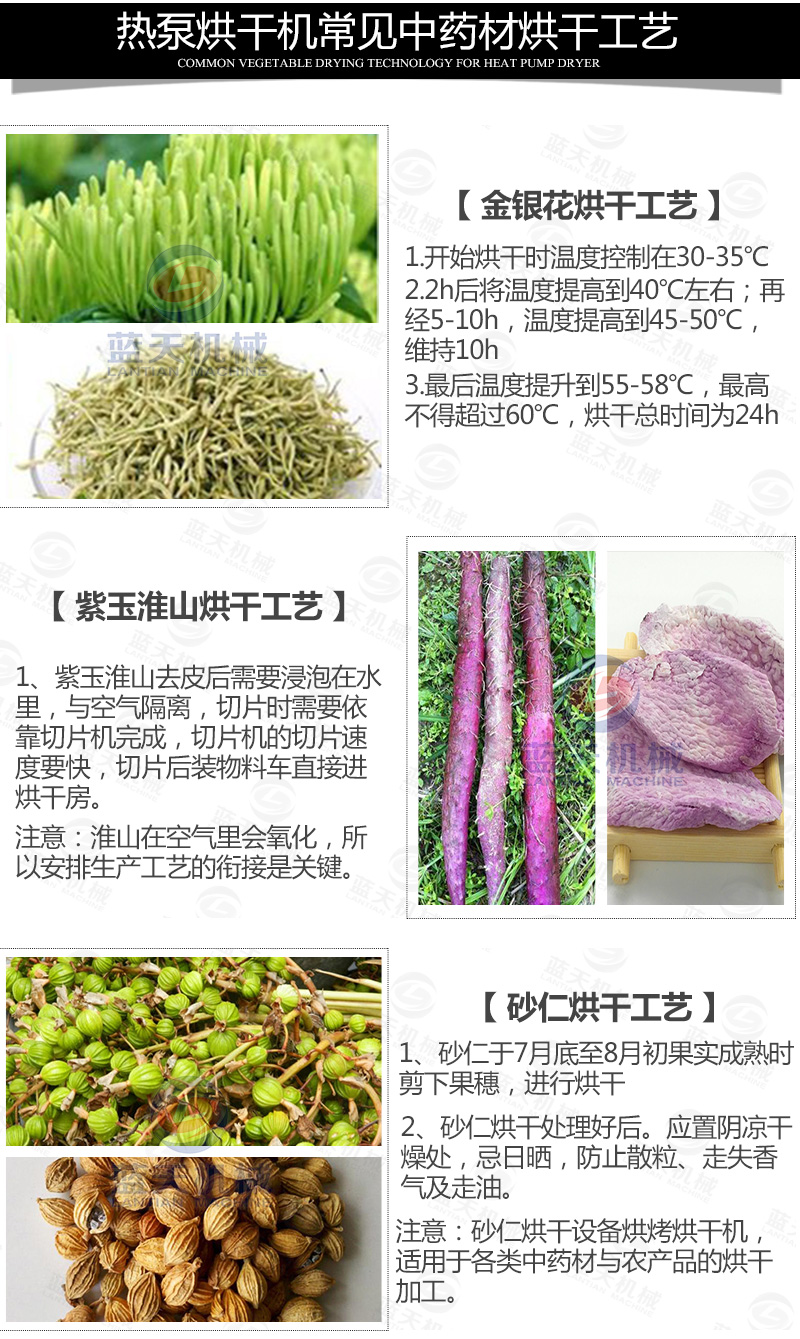 4、小切片烘干時,山藥烘干機(jī)的溫度不能太高,一般控制為70-90℃,時間設(shè)置為6-7個小時。大切片烘干時,山藥烘干設(shè)備的溫度設(shè)置要高點(diǎn),一般控制在80-100℃,烘干時間為9個小時。碎切片烘干則溫度要求較低,烘干時間為5個小時,溫度設(shè)置為60-80℃。