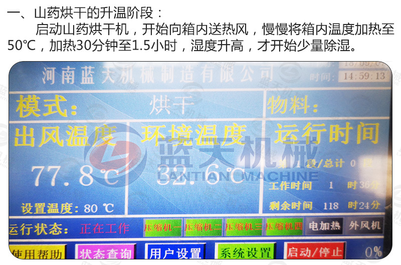 小型山藥烘干機(jī)使用技術(shù)要求:
