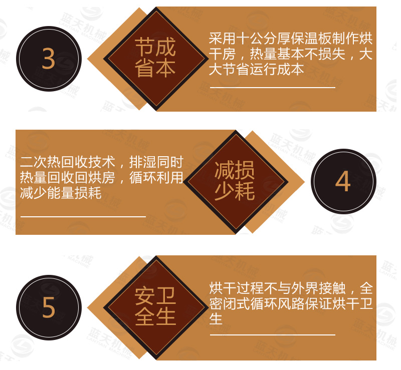 5、小型山藥烘干機(jī)空氣循環(huán)系統(tǒng)采用風(fēng)機(jī)循環(huán)送風(fēng)方式,風(fēng)循環(huán)均勻效率高。風(fēng)源由循環(huán)送風(fēng)電機(jī)(采用無觸點(diǎn)開關(guān))帶動風(fēng)輪經(jīng)由加熱器,而將熱風(fēng)送出,再經(jīng)由風(fēng)道到山藥烘干機(jī)內(nèi),再將使用后的空氣吸入風(fēng)道成為風(fēng)源再度循環(huán),加熱使用。確保室內(nèi)溫度均勻性。