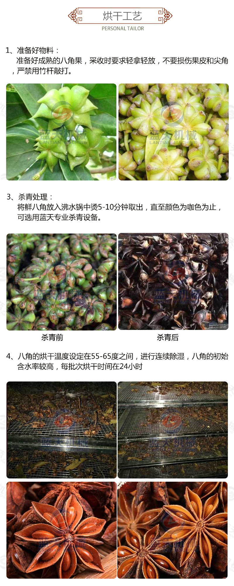 有的客戶八角產量數萬噸,如果選用大型八角烘干機,在幾天-1個月的時間內就可以完成全部八角的烘干,且大型八角烘干機的烘干效果很棒,色澤、破損率、香味都保持的不錯。講到這里,大家應該就會知道八角烘干機有不同型號的,那對八角烘干機多少錢來說,就是看機型而異了,如果您對八角烘干機感興趣有需要,歡迎您聯系我們進行咨詢。